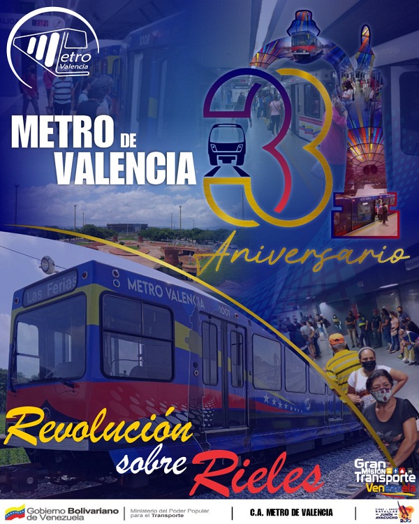 Prensa Metro de Valencia (12.08.2024). El subterráneo valenciano celebra 33 años de su fundación, siempre al servicio del pueblo y cada día afianzándose como el medio de transporte importante de la región central de Venezuela.