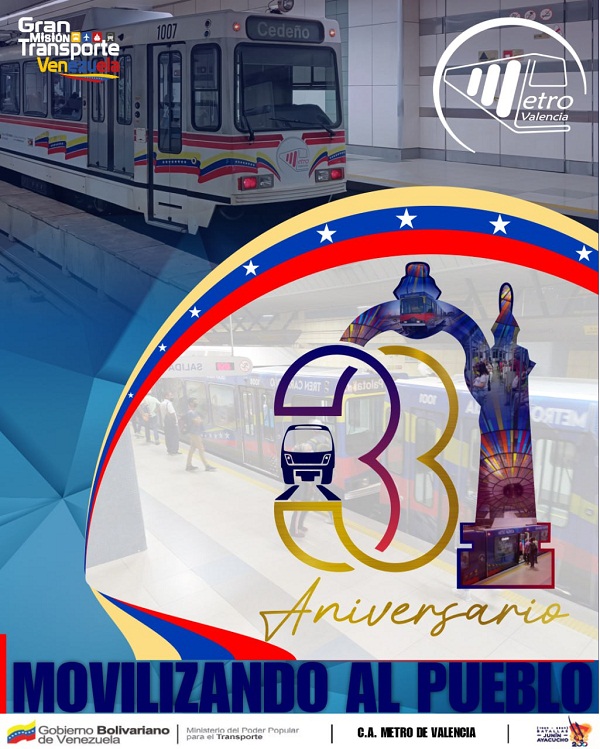 Prensa Metro de Valencia (12.08.2024). El subterráneo valenciano celebra 33 años de su fundación, siempre al servicio del pueblo y cada día afianzándose como el medio de transporte importante de la región central de Venezuela.