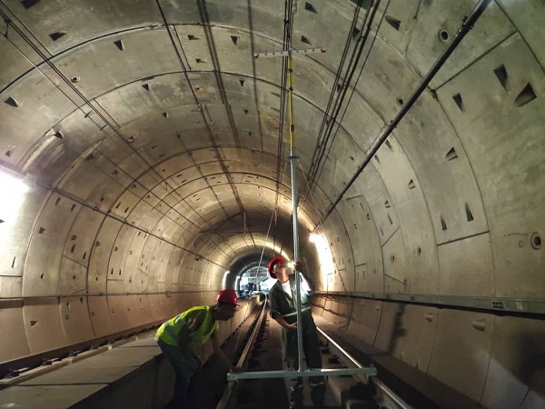 Durante las labores efectuadas por personal experto de la casa ferroviaria y comprometidos con el funcionamiento optimo del sistema, ejecutó medición de altura y centralización de la catenaria de la línea comercial, para el buen funcionamiento del suministro de energía.