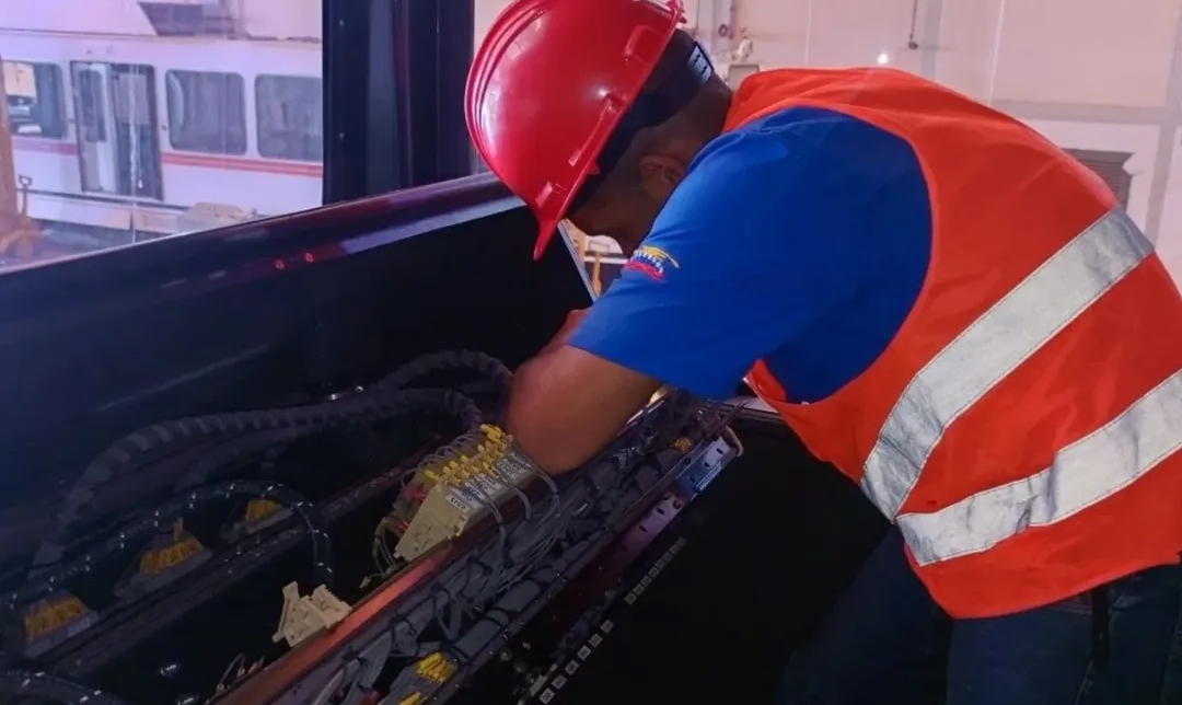 Prensa Metro de Valencia -. (30.12.2025) Ejecutando labores especializadas que buscan garantizar la seguridad y eficiencia del sistema de transporte masivo en Carabobo, se lleva a cabo el reemplazo del sensor de velocidad del motor de tracción del vagón 1004 por parte de la Coordinación de Electrónica y Potencia.